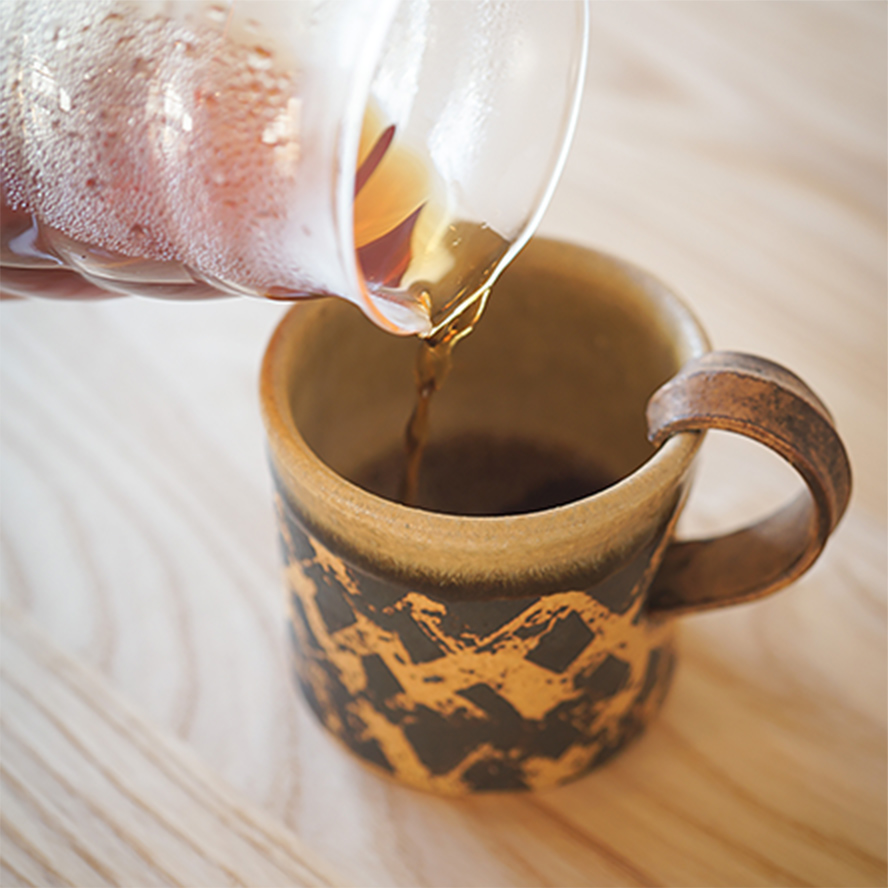 ひと晩かけてゆっくり抽出する水出しコーヒーは、コクと甘さをどーんと楽しんでいただけます。水出しに使うコーヒー豆は日替わり、毎日杯数限定です。